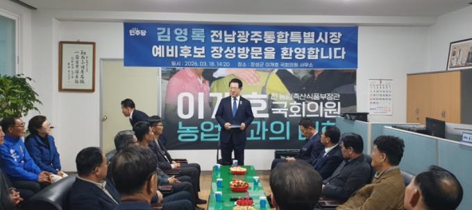 [È£³²´º½º¶óÀÎ = ¼ÀºÈ« ±âÀÚ] ±è¿µ·Ï ¹ÎÁÖ´ç Àü³²±¤ÁÖÆ¯º°½ÃÀå ¿¹ºñÈ帰¡ 18ÀÏ ´ã¾ç, À强, ¿µ±¤, ÇÔÆò µî Áö¸¦ ÀÕµû¶ó ¹æ¹®ÇØ ÁöÁö¼¼ È®»ê¿¡ ³ª¼¹´Ù.