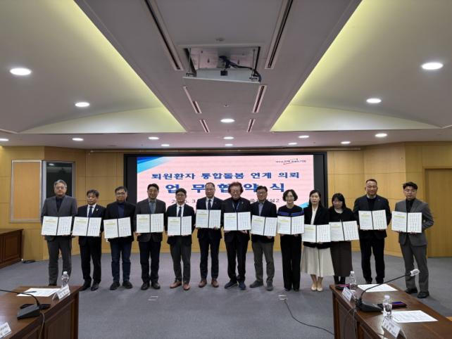 À̹ø Çù¾àÀº º´¿ø Ä¡·á¸¦ ¸¶Ä£ ȯÀÚ°¡ Åð¿ø ÀÌÈÄ Áö¿ª»çȸ¿¡¼ ¾ÈÁ¤ÀûÀ¸·Î »ýȰÇÒ ¼ö ÀÖµµ·Ï ÀǷᡤµ¹º½¡¤º¹Áö ¼ºñ½º¸¦ ¿¬°èÇÏ´Â Çù·Âü°è¸¦ ±¸ÃàÇϱâ À§ÇØ ¸¶·ÃµÆ´Ù.