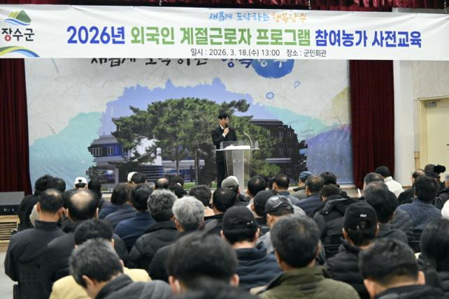 [È£³²´º½º¶óÀÎ = ¼ÀºÈ« ±âÀÚ] Àå¼ö±ºÀº 18ÀÏ ±ºÃ» ±º¹Îȸ°ü¿¡¼ 2026³âµµ ¿Ü±¹ÀÎ °èÀý±Ù·ÎÀÚ °í¿ë³ó°¡ 190¸íÀ» ´ë»óÀ¸·Î »çÀü±³À°À» ½Ç½ÃÇß´Ù.