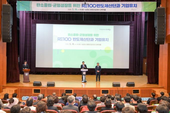 [È£³²´º½º¶óÀÎ = ¼ÀºÈ« ±âÀÚ] ¼øÃµ½Ã°¡ 19ÀÏ ¹®È°Ç°¼¾ÅÍ¿¡¼ ¡®Åº¼ÒÁ߸³±ÕÇü¼ºÀåÀ» À§ÇÑ 「RE100 ¹ÝµµÃ¼ ±¹°¡»ê´Ü°ú ±â¾÷ À¯Ä¡ ½Ã¹Î Æ÷·³」¡¯À» ¿°í Àü³² µ¿ºÎ±Ç RE100 ¹ÝµµÃ¼ ±¹°¡»ê´Ü À¯Ä¡ ºñÀüÀ» °øÀ¯Çß´Ù.