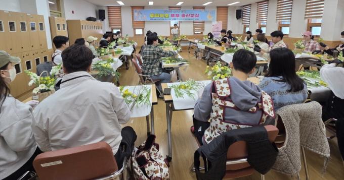 Âü°¡ ºÎºÎµéÀº ÇÁ¸®Áö¾Æ¿Í Æ«¸³ µî º½²ÉÀ» Ȱ¿ëÇØ ²É¹Ù±¸´Ï¸¦ ¸¸µé¸ç ÅÂ¾Æ¿Í ±³°¨ÇÏ°í ¼·ÎÀÇ ¸¶À½À» ³ª´©´Â ½Ã°£À» °¡Á³´Ù.