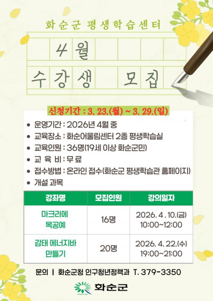 [È£³²´º½º¶óÀÎ = ¼ÀºÈ« ±âÀÚ] ȼø±º(±º¼ö ±¸º¹±Ô)Àº Áö¿ª ÁÖ¹ÎÀÇ Æò»ýÇнÀ Âü¿© È®´ë¿Í ÇнÀ Á¢±Ù¼º Çâ»óÀ» À§ÇØ 4¿ù ¿î¿µµÇ´Â Æò»ýÇнÀ ÇÁ·Î±×·¥ Âü¿©ÀÚ¸¦ ¸ðÁýÇÑ´Ù°í ¹àÇû´Ù.
