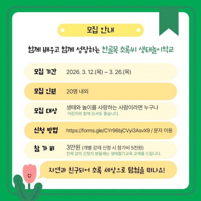 ¸ðÁý±â°£Àº ¿À´Â 26ÀϱîÁöÀ̸ç, »ýÅÂ¿Í ³îÀÌ¿¡ °ü½É ÀÖ´Â ´©±¸³ª ½Åû °¡´ÉÇÏ´Ù. ¸ðÁýÀοøÀº 20¸í ³»¿Ü·Î, Âü°¡ºñ´Â 3¸¸¿øÀÌ¸ç °³º° °ÀÇ ½Åûµµ °¡´ÉÇÏ´Ù.