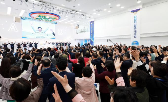 Áö³ 28ÀÏ ½ÅõÁö¿¹¼ö±³È¸ ¹Ùµ¹·Î¸ÅÁöÆÄ ¿µµîÆ÷±³È¸¿¡¼ ÁøÇàµÈ ¡®2026 ½ÅõÁö ¸»¾¸´ë¼ºÈ¸ °è½Ã¼ºÃë ½Ç»óÁõ°Å(ÀÌÇÏ ´ë¼ºÈ¸)¡¯¿¡ Âü¿©Çϱâ À§ÇØ ¸ñȸÀÚ 430¸íÀÌ ÇÑÀÚ¸®¿¡ ¸ð¿´´Ù.