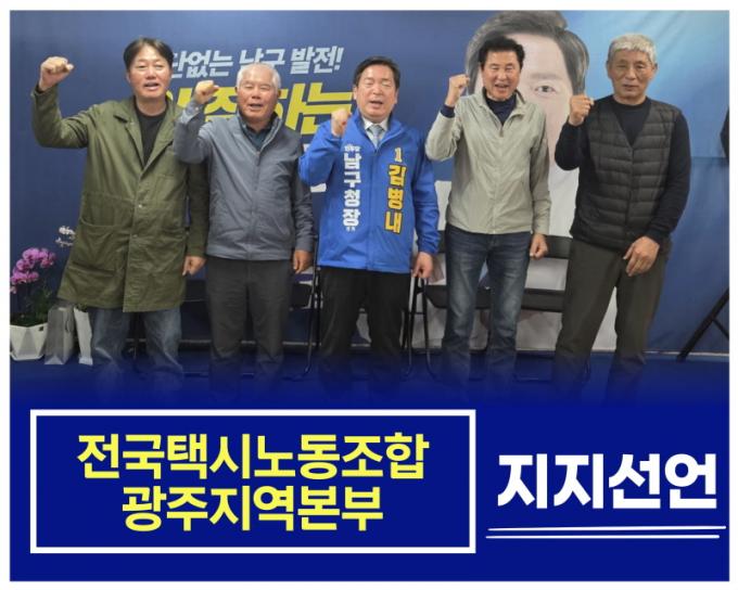 Áö³ 27ÀÏ, Àü±¹ÅýóëÁ¶ ±¤ÁÖÁö¿ªº»ºÎ(ÀÇÀå ¹®È«±Ù)¿Í ¹ÎÁÖÅýóëÁ¶ ±¤ÁÖÁö¿ªº»ºÎ(º»ºÎÀå ¾ÈÀ±ÅÃ)´Â ÁöÁö ¼±¾ð¹®À» ÅëÇØ ¡°½Ã¹ÎÀÇ ¹ßÀÎ Åýà ³ëµ¿ÀÚÀÇ »îÀ» ±íÀÌ ÀÌÇØÇÏ°í ¼¹Î °æÁ¦¸¦ »ì¸± ÀûÀÓÀÚ´Â ±èº´³» Èĺ¸»Ó¡±À̶ó°í ¹àÇû´Ù. À̵éÀº ±è È帰¡ ±×°£ º¸¿©ÁØ ¿î¼öÁ¾»çÀÚ ±ÇÀÍ Çâ»ó¿¡ ´ëÇÑ ÀÇÁö¿Í ¼ÒÅë ´É·ÂÀ» ³ôÀÌ Æò°¡Çϸç, °øÁ¤ÇÑ ¼±°Å¹®È Á¤Âø°ú Áö¿ª ¹ßÀü¿¡ Çù·ÂÇÒ °ÍÀ» ¾à¼ÓÇß´Ù.