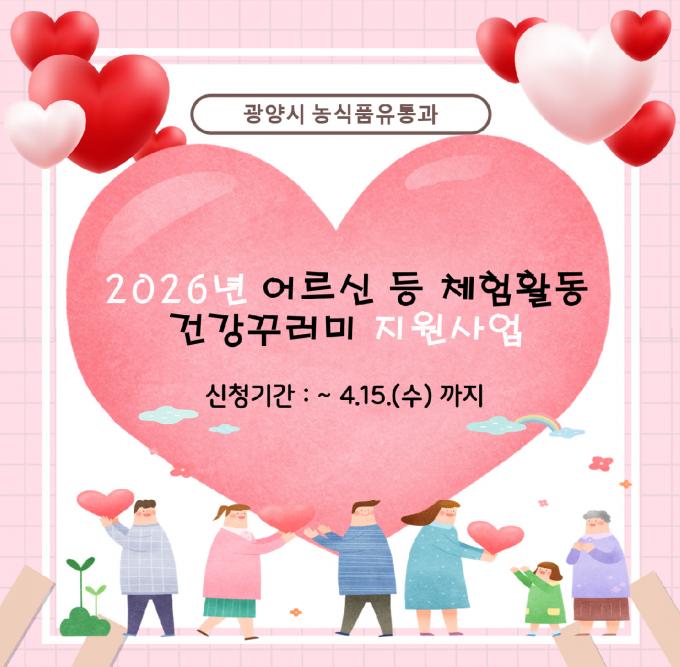 [È£³²´º½º¶óÀÎ = ¼ÀºÈ« ±âÀÚ] ±¤¾ç½Ã°¡ ¾î¸£½Å¡¤Àå¾ÖÀΡ¤¾Æµ¿ µî ½Ç¿Ü Ȱµ¿ÀÌ ¾î·Á¿î ÀÌ¿ëÀÚ¸¦ ´ë»óÀ¸·Î ¡®Ã¼ÇèȰµ¿ °Ç°²Ù·¯¹Ì Áö¿ø»ç¾÷¡¯À» ÃßÁøÇϰí, 4¿ù 15ÀϱîÁö ½ÅûÀ» ¹Þ´Â´Ù.