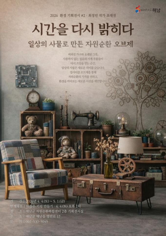 [È£³²´º½º¶óÀÎ = ¼ÀºÈ« ±âÀÚ] ÇØ³²±ºÀÚ¿ø¼øÈ¯º¹ÇÕ¼¾ÅÍ´Â 4¿ù 4ÀϺÎÅÍ 5¿ù 1ÀϱîÁö ȯ°æ±âȹ Àü½Ã¡®½Ã°£À» ´Ù½Ã ¹àÈ÷´Ù–ÀÏ»óÀÇ »ç¹°·Î ¸¸µç ÀÚ¿ø¼øÈ¯ ¿ÀºêÁ¦¡¯¸¦ ¼±º¸ÀδÙ.
