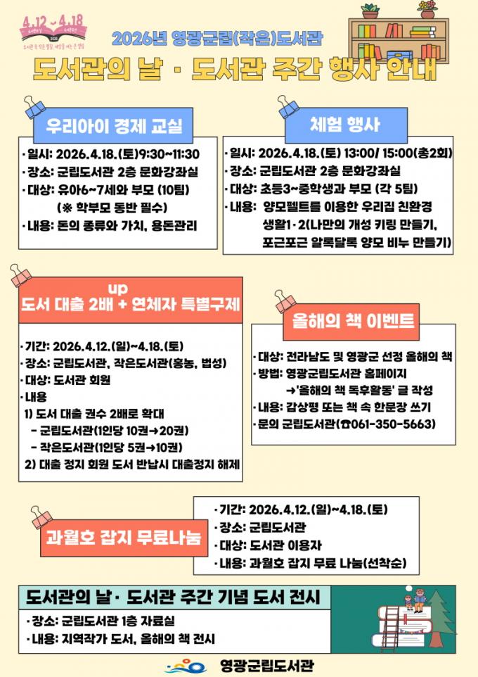 ¡®µµ¼°ü ¼Ó ÀÛÀº Æîħ, ¼¼»óÀ» ¿©´Â Å« ¿¸²¡¯À̶õ ÁÖÁ¦·Î ±º¹ÎµéÀÇ Âü¿©¸¦ È®´ëÇϰí, µµ¼°üÀÇ °ø°øÀû °¡Ä¡¿Í ¿ªÇÒ¿¡ ´ëÇÑ ÀνÄÀ» ³ôÀ̱â À§ÇØ ¸¶·ÃµÈ µµ¼°ü ÁÖ°£ üÇè ÇÁ·Î±×·¥ ¡ãÀ¯¾Æ¿Í ºÎ¸ð ´ë»ó ¡®¿ì¸® ¾ÆÀÌ °æÁ¦ ±³½Ç(6~7¼¼)¡¯ ¡ã¡®¾ç¸ðÆçÆ®¸¦ ÀÌ¿ëÇÑ ¿ì¸®Áý ģȯ°æ »ýȰ¡¯ ¿Ü ¡ãÁö¿ªÀÛ°¡ µµ¼ Àü½Ã ¡ã¿ÃÇØÀÇ Ã¥ °¨»óÆò À̺¥Æ®¸¦ ÁøÇàÇÑ´Ù.