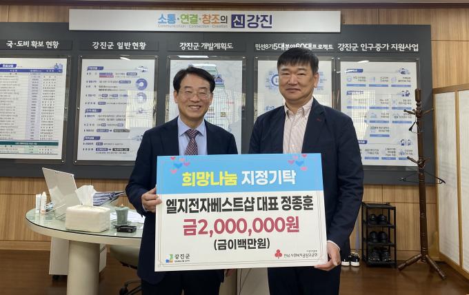 [È£³²´º½º¶óÀÎ = ¼ÀºÈ« ±âÀÚ] Á¤Á¾ÈÆ LGÀüÀÚ º£½ºÆ®¼¥ °ÁøÁ¡ ´ëÇ¥°¡ Áö³ 2ÀÏ Áö¿ª ¾î¸£½ÅµéÀ» À§ÇÑ ÀÌ¿ôµ½±â ¼º±Ý 200¸¸ ¿øÀ» ±âŹÇÏ¸ç ³ª´® ¹®È¿¡ ¾ÕÀå¼°í ÀÖ´Ù.