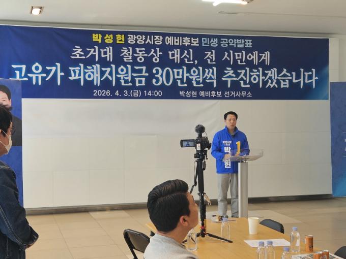 [È£³²´º½º¶óÀÎ = ¼ÀºÈ« ±âÀÚ] ´õºÒ¾î¹ÎÁÖ´ç ±¤¾ç½ÃÀå °æ¼±¿¡ Ã⸶ÇÑ ¹Ú¼ºÇö ±¤¾ç½ÃÀå ¿¹ºñÈ帰¡ °íÀ¯°¡¡¤°í¹°°¡ À§±â ´ëÀÀÀ» À§ÇØ Àü ½Ã¹Î ´ë»ó 30¸¸ ¿ø Áö¿ø±ÝÀ» Áö±Þ ÃßÁø Çϰڴٴ °ø¾àÀ» ¹ßÇ¥Çß´Ù.
