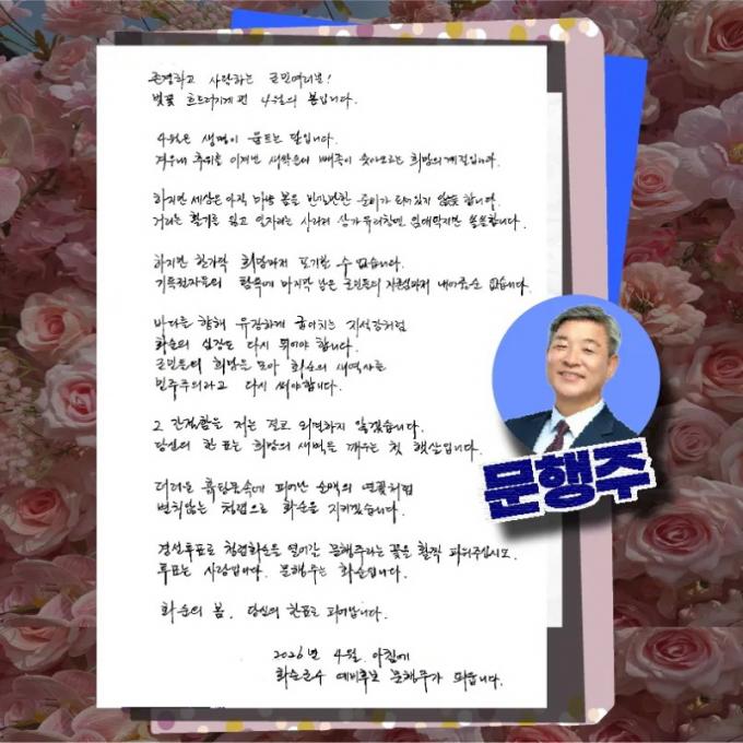 ¹®ÇàÁÖ È帴 ±º¹ÎÀÇ ÇÑ Ç¥°¡ Èñ¸ÁÀÇ »õº®À» ±ú¿ì´Â ù ÇÞ»ì°ú °°´Ù°í ºñÀ¯Çϸç, ¡°±× °£ÀýÇÔÀ» °áÄÚ ¿Ü¸éÇÏÁö ¾Ê°Ú´Ù. °æ¼± ÅõÇ¥·Î û·ÅÇÑ È¼øÀ» ¿¾î°¥ ¡®¹®ÇàÁÖ¡¯¶ó´Â ²ÉÀ» Ȱ¦ ÇÇ¿ö ´Þ¶ó¡±°í È£¼ÒÇß´Ù.
