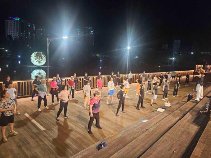 ÁÖ¿ùµ¿°ú ¹é¿îµ¿ µîÁö¿¡ °ÅÁÖÇÏ´Â ÁֹεéÀº Ǫ¸¥±æ °ø¿ø¿¡¼ ½Å¸í³ª´Â À²µ¿¿¡ ¸ÂÃç ½ÅüȰµ¿¿¡ ³ª¼°í ÀÖÀ¸¸ç, ȿõÁö±¸ ÁֹεéÀº ¹°ºû ±Ù¸°°ø¿ø È£¼ö¿¡ ¼¼¿öÁø ´Þºû Á¶Çü¹°ÀÇ °í¿î ÀÚÅÂ¿Í ºü¸¥ ¹ÚÀÚÀÇ À½¾ÇÀ» ¹þ »ï¾Æ ¿Á¤ÀûÀÎ ¿îµ¿À» Áñ±â°í ÀÖ´Ù.