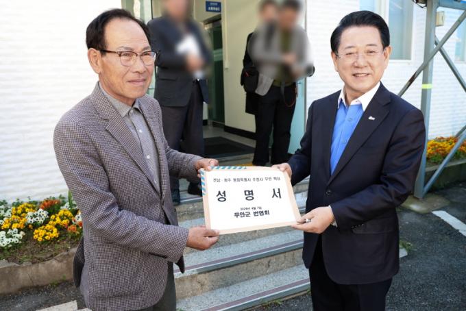 [È£³²´º½º¶óÀÎ = ¼ÀºÈ« ±âÀÚ] ¹«¾È±º ¹ø¿µÈ¸(ȸÀå ¹Ú¹®Àç)´Â Áö¹æ¼±°Å¸¦ ¾ÕµÎ°í ´õºÒ¾î¹ÎÁÖ´ç Àü³²±¤ÁÖÅëÇÕÆ¯º°½ÃÀå Èĺ¸Àڵ鿡°Ô ÅëÇÕÆ¯º°½Ã ÁÖû»ç ¹®Á¦¿¡ ´ëÇÑ ÁúÀǼ¸¦ ¹ß¼ÛÇϰí ÀÌ¿¡ ´ëÇÑ ´äº¯À» ¿äûÇß´Ù°í ¹àÇû´Ù.
