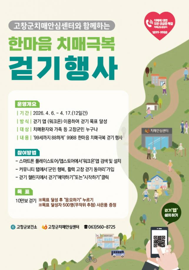 [È£³²´º½º¶óÀÎ = ¼ÀºÈ« ±âÀÚ] °íⱺº¸°Ç¼Ò°¡ Ä¡¸Å ¿¹¹æ°ú ±Øº¹À» À§ÇÑ ¡®ÇѸ¶À½ Ä¡¸Å±Øº¹ °È±âÇà»ç¡¯¸¦ 4¿ù17ÀϱîÁö 12Àϰ£ ¸ð¹ÙÀÏ ¾Û(¿öÅ©¿Â)À» Ȱ¿ëÇØ ºñ´ë¸é ¹æ½ÄÀ¸·Î ¿î¿µÇÑ´Ù.
