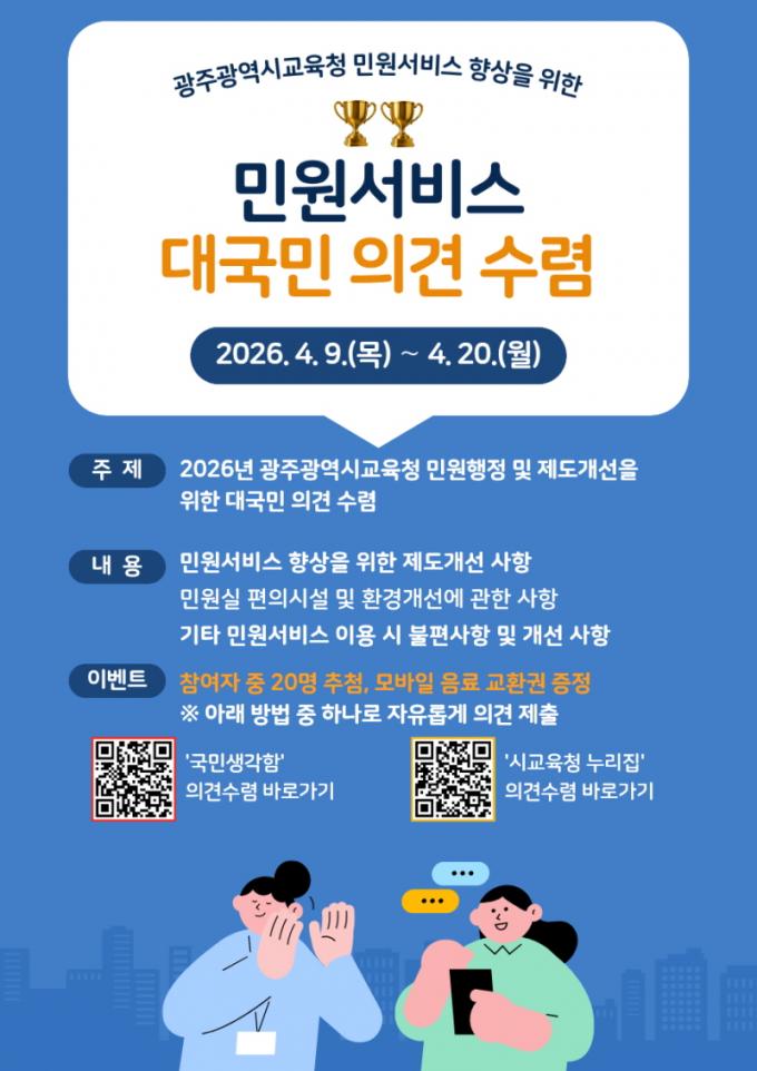 ±¤ÁÖ±¤¿ª½Ã±³À°Ã», ¹Î¿ø¼ºñ½º ǰÁú Çâ»ó À§ÇÑ ±¹¹Î ÀÇ°ß ¼ö·Å ³ª¼