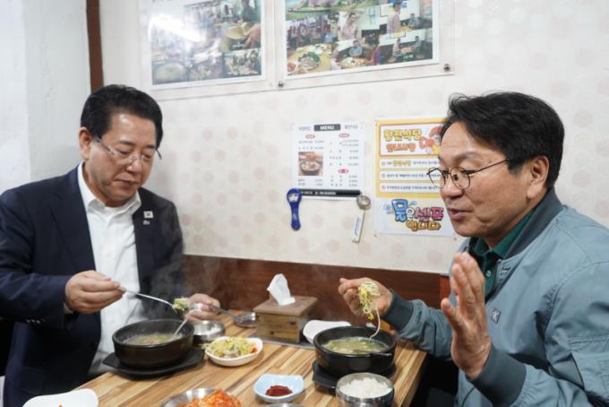 ±è ¿¹ºñÈ帴 À̳¯ ° ½ÃÀå°ú ÇÔ²² ¼øÃµ½Ã ¿ôÀå¿¡¼ »óÀΰú ½Ã¹ÎµéÀ» Á÷Á¢ ¸¸³µ´Ù. ±è ¿¹ºñÈĺ¸¿Í °½ÃÀåÀº ¡®ÃÖ±ÙÀÇ ¾î·Á¿î °æÁ¦»óȲÀ» ¸öÀ¸·Î ü°¨Çϰí ÀÖ´Ù¡¯´Â »óÀεéÀÇ È£¼Ò¿¡ °ø°¨À» Ç¥Çϰí, ¹Î»ýÁö¿ø±Ý Áö±Þ µî °ð¹Ù·Î ´ëÃ¥À» °±¸ÇÏ°Ú´Ù°í ¸»Çß´Ù. ÀÌ¾î ±¹¹ä°ñ¸ñ¿¡¼ »óÀεé°ú ½Ä»çµµ °°ÀÌ Çϸé¼, ¹Î½ÉÀ» ûÃëÇß´Ù.