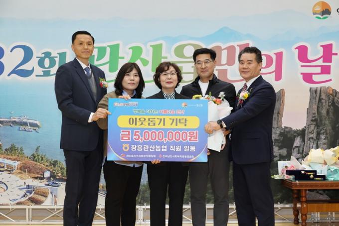 ¾Æ¿ì¸§ ¿µ³óÁ¶ÇÕ¹ýÀÎÀÇ ±èÇö¹Î ´ëÇ¥ 500¸¸¿ø, ÀåÈï°ü»ê³óÇù(Á¶ÇÕÀå ¿ÀÇüÁÖ) ÀÓÁ÷¿ø 500¸¸¿ø, ÀåÈﱺÁ¶»ç·áÇùÀÇȸ °ü»êÀ¾¿¬°áü ȸ¿ø Àϵ¿ 300¸¸ ¿øÀ» ±âŹÇϸç Áö¿ª »ó»ýÀÇ °¡Ä¡¸¦ ½ÇÇöÇß´Ù.