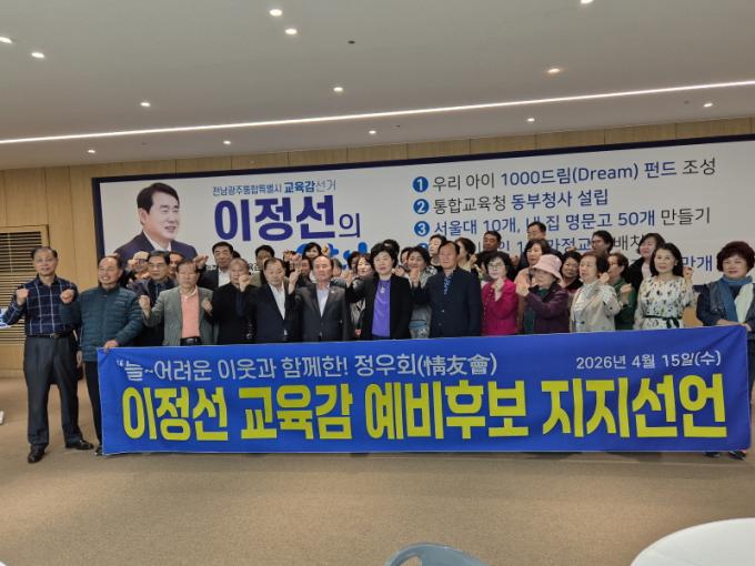 ±èÀç¿À Á¤¿ìȸ ȸÀåÀº ¡°ÀÌÁ¤¼± È帴 Áö³ ½Ã°£ µ¿¾È ´ÙÁ®¿Â źźÇÑ ±âÃÊ À§¿¡ Àü³², ±¤ÁÖ ±³À°ÀÇ ´õ Å« ¹Ì·¡¸¦ ¼³°èÇÒ À¯ÀÏÇÑ ÀûÀÓÀÚ¡±¶ó¸ç ¡°±¤ÁÖó·³ Àü³²±³À°ÀÇ ¹Ì·¡¸¦ À§ÇØ ½Ç·Â ÀÖ´Â ±³À° Àü¹®°¡ ÀÌÁ¤¼± È常¦ ¾ÐµµÀûÀ¸·Î ÁöÁöÇØ ÁÖ½Ç °ÍÀ» ½Ãµµ¹Î²² °£°îÈ÷ È£¼Òµå¸°´Ù¡±°í ¸»Çß´Ù.