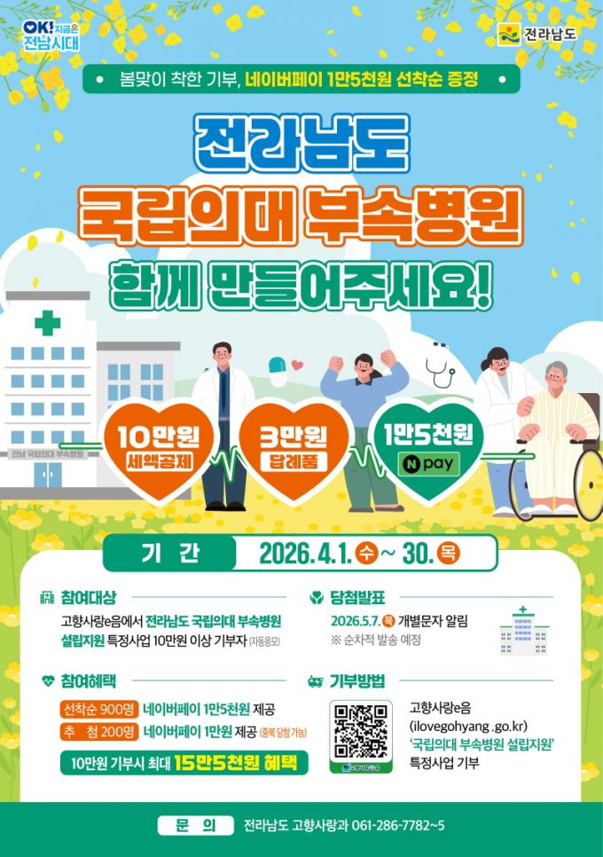 [È£³²´º½º¶óÀÎ = ¼ÀºÈ« ±âÀÚ] Àü¶ó³²µµ°¡ °íÇâ»ç¶û±âºÎÁ¦¸¦ Ȱ¿ëÇØ Áö¿ª ÀÇ·á ÀÎÇÁ¶ó È®Ãæ¿¡ ³ª¼±´Ù. ±¹¸³ÀÇ´ë ºÎ¼Óº´¿ø ¼³¸³À̶ó´Â ÇÙ½É »ç¾÷À» Áß½ÉÀ¸·Î ±âºÎ Âü¿©¸¦ È®´ëÇϱâ À§ÇÑ È«º¸ À̺¥Æ®¸¦ ¿¬°èÇØ ÃßÁøÇÑ´Ù.