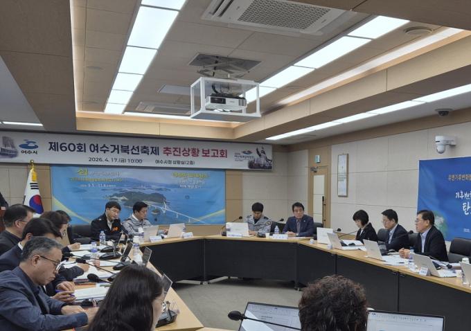 [È£³²´º½º¶óÀÎ = À̺´¸¸ ±âÀÚ] ¿©¼ö½Ã´Â Áö³ 17ÀÏ ½Ãû »óȲ½Ç¿¡¼ Á¤Çö±¸ ½ÃÀå ±ÇÇÑ´ëÇà ÁÖÀç·Î ¡®Á¦60ȸ ¿©¼ö°ÅºÏ¼±ÃàÁ¦ ÃßÁø»óȲ º¸°íȸ¡¯¸¦ ¿°í ±¹¡¤¼Ò¡¤´ÜÀåÀ» ºñ·ÔÇØ °ÅºÏ¼±ÃàÁ¦ ÃßÁøÀ§¿øÈ¸, À¯°ü±â°ü °ü°èÀÚ µî 20¿© ¸íÀÌ Âü¼®ÇÑ °¡¿îµ¥ Àü¹ÝÀûÀÎ Áغñ»çÇ×À» Á¡°ËÇß´Ù°í ¹àÇû´Ù.