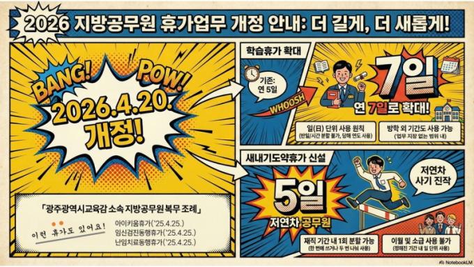 ÇнÀÈÞ°¡´Â ±âÁ¸ ¿¬°£ 5ÀÏ À̳»¿¡¼ ¿¬°£ 7ÀÏ À̳»·Î È®´ëµÆ´Ù. ÇнÀÈÞ°¡´Â °ø¹«¿øÀÇ Á÷¹«¿ª·® Çâ»óÀ» À§ÇÑ ±³À°¡¤¿¬¼ö¡¤ÀÚ°Ý Ãëµæ µî¿¡ Ȱ¿ëµÇ´Â Á¦µµ·Î, À̹ø È®´ë¸¦ ÅëÇØ ÀÚ±â°è¹ß ±âȸ¸¦ º¸´Ù Æø³Ð°Ô º¸ÀåÇÒ ¼ö ÀÖÀ» °ÍÀ¸·Î ±â´ëµÈ´Ù.