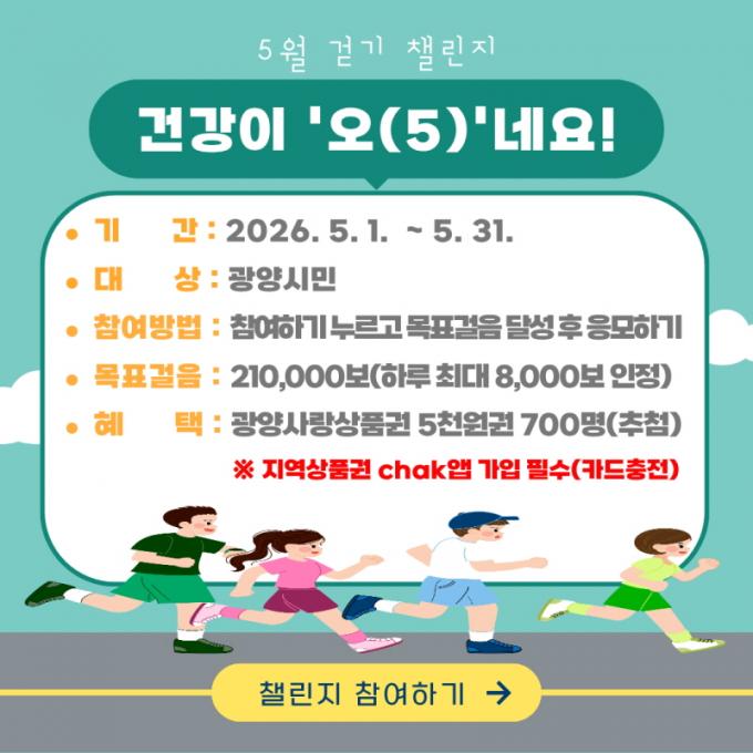 [È£³²´º½º¶óÀÎ = ¼ÀºÈ« ±âÀÚ] ±¤¾ç½Ã´Â ¿À´Â 5¿ù 1ÀϺÎÅÍ 5¿ù 31ÀϱîÁö ¸ð¹ÙÀÏ °È±â ¾Û ¿öÅ©¿ÂÀ» Ȱ¿ëÇÑ ¡®°Ç°ÀÌ ¿À(5)³×¿ä! 5¿ù °È±â 縰Áö¡¯¸¦ ¿î¿µÇÑ´Ù°í 24ÀÏ ¹àÇû´Ù.