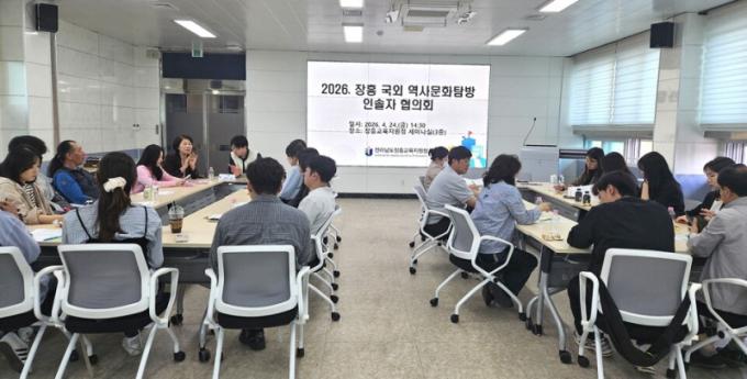 [È£³²´º½º¶óÀÎ = ¼ÀºÈ« ±âÀÚ] ÀåÈï±³À°Áö¿øÃ»(±³À°Àå Á¤ÇàÁß)Àº 4¿ù 24ÀÏ(±Ý) ÀåÈï±³À°Áö¿øÃ» ¼¼¹Ì³ª½Ç¿¡¼ °ü³» ÁßÇб³ ÀμÖÀÚ(´Üº° ´ÜÀå ¹× Àμֱ³»ç)°¡ Âü¼®ÇÑ °¡¿îµ¥ ¡¸2026. ÀåÈï ±¹¿Ü¿ª»ç¹®È޹æ ÀμÖÀÚ ÇùÀÇȸ¡¹¸¦ °³ÃÖÇß´Ù.