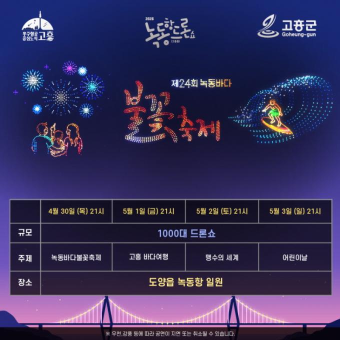 [È£³²´º½º¶óÀÎ = ¼ÀºÈ« ±âÀÚ] °íÈﱺ(±º¼ö °ø¿µ¹Î)Àº ¿À´Â 4¿ù 30ÀϺÎÅÍ 5¿ù 3ÀϱîÁö ³ìµ¿Ç× ÀÏ¿ø¿¡¼ ¿¸®´Â ¡®Á¦24ȸ ³ìµ¿¹Ù´ÙºÒ²ÉÃàÁ¦¡¯ ±â°£¿¡ 1,000´ë ±Ô¸ðÀÇ µå·Ð¼î¸¦ °³ÃÖÇÑ´Ù°í ¹àÇû´Ù.
