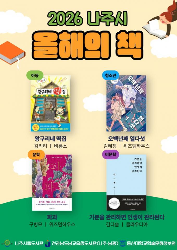 [È£³²´º½º¶óÀÎ = ¼ÀºÈ« ±âÀÚ] ³ªÁֽø³µµ¼°üÀº ½Ã¹Îµé°ú ÇÔ²² Ã¥À» ÀÐ°í °ø°¨À» ³ª´©¸ç µ¶¼ ¹®È¸¦ Ȱ¼ºÈÇϱâ À§ÇÑ ¡®2026³â ³ªÁֽà ¿ÃÇØÀÇ Ã¥¡¯À¸·Î 4°³ ºÐ¾ßº° ÃÖÁ¾ µµ¼ 1±Ç¾¿, ÃÑ 4±ÇÀ» ¼±Á¤Çß´Ù°í ¹àÇû´Ù.