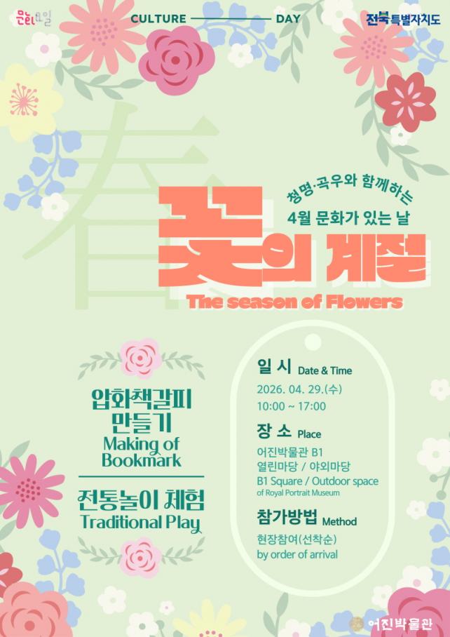 [È£³²´º½º¶óÀÎ = ¼ÀºÈ« ±âÀÚ] ÀüÁֽà ¾îÁø¹Ú¹°°üÀº ¿À´Â 29ÀÏ 4¿ù ¡®¹®È°¡ ÀÖ´Â ³¯¡¯À» ¸Â¾Æ ¡®²ÉÀÇ °èÀý¡¯À» ÁÖÁ¦·Î ÇÑ Ã¼ÇèÇÁ·Î±×·¥À» ¿î¿µÇÑ´Ù°í 27ÀÏ ¹àÇû´Ù.