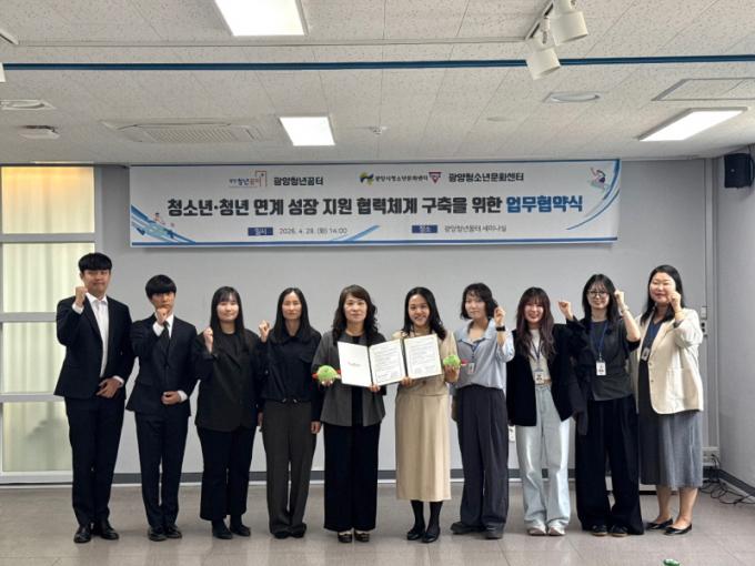 [È£³²´º½º¶óÀÎ = ¼ÀºÈ« ±âÀÚ] ±¤¾çû³â²ÞÅÍ(¼¾ÅÍÀå ¹èÇý±Ý)¿Í ±¤¾ç½Ãû¼Ò³â¹®È¼¾ÅÍ(¼¾ÅÍÀå Á¤ÇöÀÚ)´Â 4¿ù 28ÀÏ ±¤¾çû³â²ÞÅÍ ¼¼¹Ì³ª½Ç¿¡¼ û¼Ò³â¡¤Ã»³â ¿¬°è ¼ºÀå Áö¿øÀ» À§ÇÑ ¾÷¹«Çù¾à(MOU)À» ü°áÇß´Ù°í ¹àÇû´Ù.