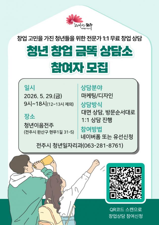 5¿ù 29ÀÏ Ã»³âÀÌÀ½ÀüÁÖ¿¡¼ ±Ý¿äÀÏÀÇ ¶ÈºÎ·¯Áö´Â »ó´ã ÇÁ·Î±×·¥ ¡®Ã»³â â¾÷ ±Ý¶È »ó´ã¼Ò¡¯ ¿î¿µ