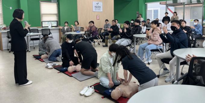 ÁÖ¿ä ±³À° ³»¿ëÀº ¡ã½ÉÁ¤Áö ȯÀÚ ¹ß°ß ½Ã ½Å°í ¹× µµ¿ò ¿äû ¿ä·É ¡ã°¡½¿ ¾Ð¹Ú ½ÉÆó¼Ò»ý¼ú ¡ãÀÚµ¿½ÉÀåÃæ°Ý±â(AED) »ç¿ë¹ý ¡ã±âµµ À̹°Áú ÈíÀÎ ½Ã ÀÀ±Þóġ(ÇÏÀÓ¸®È÷¹ý) µîÀÌ´Ù. Âü°¡ÀÚµéÀº ±³À°¿ë ¸¶³×Å·À» Ȱ¿ëÇØ °¡½¿ ¾Ð¹ÚÀÇ °µµ¿Í ¼Óµµ¸¦ Á÷Á¢ ½Ç½ÀÇϸç ÇöÀå ´ëÀÀ ´É·ÂÀ» üµæÇß´Ù.
