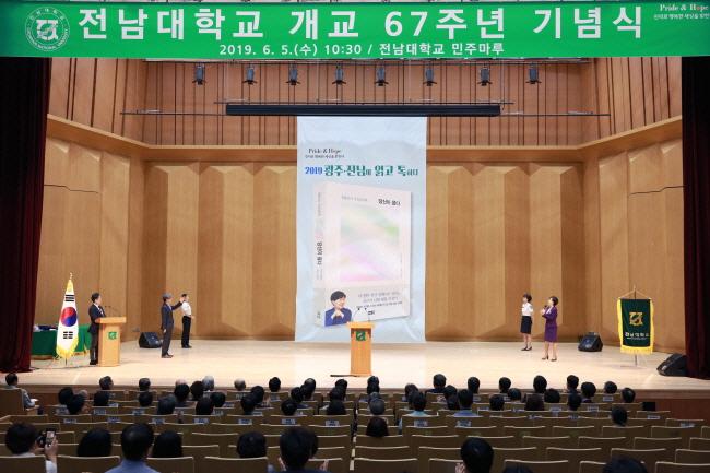 Àü³²´ëÇб³´Â Áö³ 5ÀÏ Á¦67Áֳ⠰³±³±â³ä½Ä¿¡¼ ¡®2019 ÇÑ Ã¥¡¯ ¼±Æ÷½ÄÀ» °®°í, ±¤ÁÖÀü³² ½Ã¡¤µµ¹Î 1¸¸8õ¿©¸íÀÌ Âü¿©ÇÑ ÅõÇ¥ °á°ú Á¤Çý½Å ÀÛ°¡°¡ ¾´ ¡®´ç½ÅÀÌ ¿Ç´Ù¡¯°¡ ÃÖÁ¾ ¼±Á¤µÆ´Ù°í ¹ßÇ¥Çß´Ù.