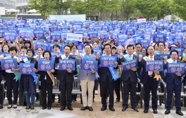 ±¤Áֽô ¼ö¿µ´ëȸ ±â°£ ±¤ÁÖ¸¦ ãÀº ¼±¼ö, ÀÓ¿ø µî ¹æ¹®°´¿¡°Ô ±¤ÁÖÀÇ µµ½Ã À̹ÌÁö¸¦ Á¦°íÇϱâ À§ÇØ ¾ÈÀüÇÑ ±¤ÁÖ, Ä£ÀýÇÑ ±¤ÁÖ, û°áÇÑ ±¤ÁÖ, Áú¼¸¦ Àß ÁöŰ´Â ±¤ÁÖ, ºÒ¹ýÁÖÂ÷ ¾ÈÇÏ´Â ±¤ÁÖ, ´ëÁß±³Åë ÀÌ¿ëÇÏ´Â ±¤ÁÖ, ºÒ¹ý Çö¼ö¸· ¾ø´Â ±¤ÁÖ, À½ÁÖ¿îÀü ÇÏÁö ¾Ê´Â ±¤ÁÖ, ¿ôÀ¸¸ç ÀλçÇÏ´Â ±¤ÁÖ, ³ª´®ÀÌ ³ÑÄ¡´Â ±¤ÁÖ µî 10´ë ½Çõ°úÁ¦¸¦ ¼±Á¤Çß´Ù. À̳¯ Çà»ç´Â °¢ Âü¿©´Üü ´ëÇ¥ÀÇ °áÀǹ® ³¶µ¶°ú ÇÔ²² 10´ë °úÁ¦ ½ÇõÀ» ´ÙÁüÇÏ´Â ÆÛÆ÷¸Õ½º µîÀ» ÆîÄ¡¸ç ¼ö¿µ´ëȸ ¼º°ø °áÀǸ¦ ´ÙÁ³´Ù.