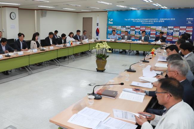 2019±¤ÁÖ¼¼°è¼ö¿µ¼±¼ö±Ç´ëȸÁ¶Á÷À§(À§¿øÀå À̿뼷, ÀÌÇÏ ¡®Á¶Á÷À§¡¯)¿¡ µû¸£¸é 6¿ù 13ÀÏ ¿ÀÈÄ, ¹®ÈüÀ°°ü±¤ºÎ ³ëŰ Á¦2Â÷°ü ÁÖÀç·Î Áúº´°ü¸®º»ºÎ, ½ÄǰÀǾàǰ¾ÈÀüó, ±¤ÁÖ±¤¿ª½Ã, ¿©¼ö½Ã µî ´ëȸ ¾ÈÀü°ü·Ã À¯°ü±â°üµéÀÌ Âü¼®ÇÑ °¡¿îµ¥ ¡®´ëȸ Á¾ÇÕ¾ÈÀü´ëÃ¥ ȸÀÇ¡¯¸¦ ¿¾ú´Ù.
