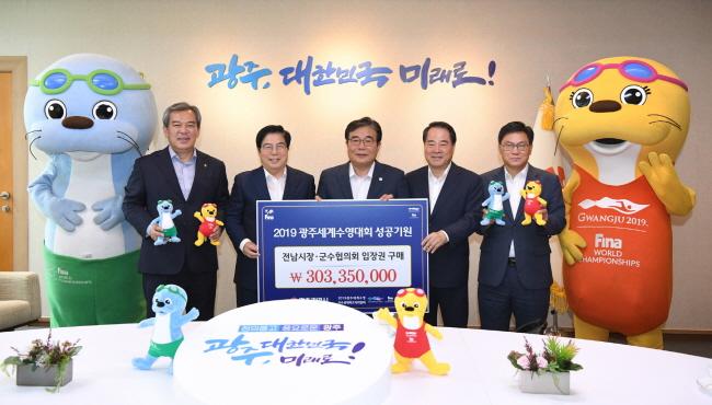 ±¤ÁÖ±¤¿ª½Ã¿Í 2019±¤ÁÖ¼¼°è¼ö¿µ¼±¼ö±Ç´ëȸÁ¶Á÷À§¿øÈ¸´Â 18ÀÏ ¿ÀÀü ½Ãû 3Ãþ Á¢°ß½Ç¿¡¼ Àü³²½ÃÀ塤±º¼öÇùÀÇȸ¿Í 3¾ï300¸¸¿ø »ó´ç ÀÔÀå±Ç ±¸¸ÅÁõ¼ Àü´Þ½ÄÀ» °¡Áøµ¥ À̾î, ±¤Áֽà ¹è±¸Çùȸ¿Íµµ 1000¸¸¿ø »ó´ç ÀÔÀå±Ç ±¸¸ÅÁõ¼ Àü´Þ½ÄÀ» °¡Á³´Ù.