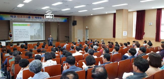 ÇÑÆí, Àü¶ó³²µµ±³À°Ã»Àº Çб³ ÇöÀåÀÇ ¹ÎÁֽùΠ´ã·ÐÀ» È®»êÇϱâ À§ÇØ ¿À´Â 6¿ù 28ÀÏ ¿ÀÈÄ Àü³²¿©¼º°¡Á·Àç´Ü ´ë°´ç¿¡¼ Àü¶ó³²µµÀÇȸ¿Í °øµ¿À¸·Î ¡®Àü³²µµ¹Î°ú ÇÔ²² ÇÏ´Â ¹ÎÁֽùα³À°Æ÷·³¡¯À» ¿°í, ¡®Çб³ÀÚÄ¡¿Í ¹ÎÁֽùα³À°ÀÇ Çö½Ç°ú °úÁ¦¡¯¸¦ ÁÖÁ¦·Î Çлý, ±³¿ø, µµÀÇȸ, Çкθð, ½Ã¹Î»çȸ´Üü µî °¢°è°¢ÃþÀÇ ÀǰßÀ» ¸ðÀ» ¿¹Á¤ÀÌ´Ù.