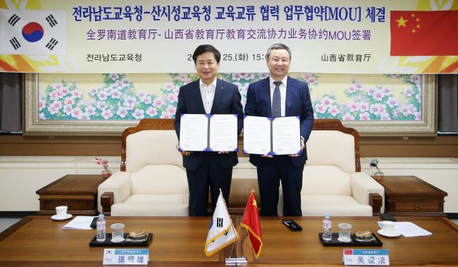 Àü¶ó³²µµ±³À°Ã»ÀÌ 6¿ù 25ÀÏ Ã»»ç 5Ãþ ºñÁî´Ï½º½Ç¿¡¼ Áß±¹ »ê½Ã¼º(ߣà¤àý)±³À°Ã»°ú ±³·ù Çù¾àÀ» ü°áÇß´Ù.