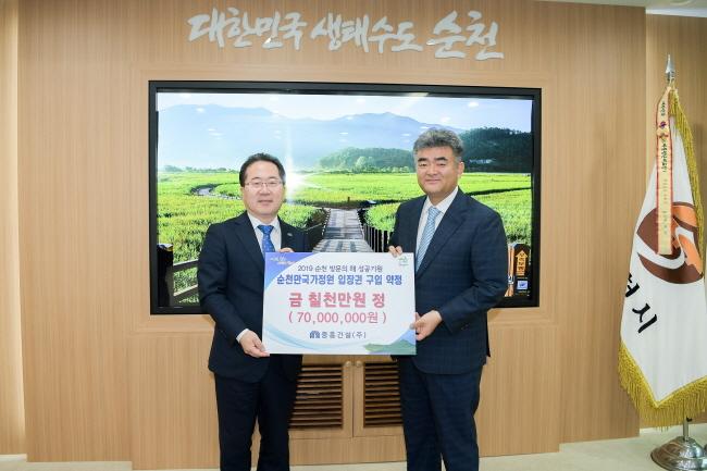 ¼øÃµ½Ã´Â Áö³ 27ÀÏ(¸ñ) ¡®2019 ¼øÃµ ¹æ¹®ÀÇ ÇØ¡¯¼º°øÀ» ±â¿øÇϸç ÁßÈï°Ç¼³(ÁÖ)¿Í 7õ¸¸¿ø »ó´çÀÇ ¡®¼øÃµ¸¸±¹°¡Á¤¿ø ÀÔÀå±Ç ±¸¸Å ¾àÁ¤½Ä¡¯À» °¡Á³´Ù°í ¹àÇû´Ù.