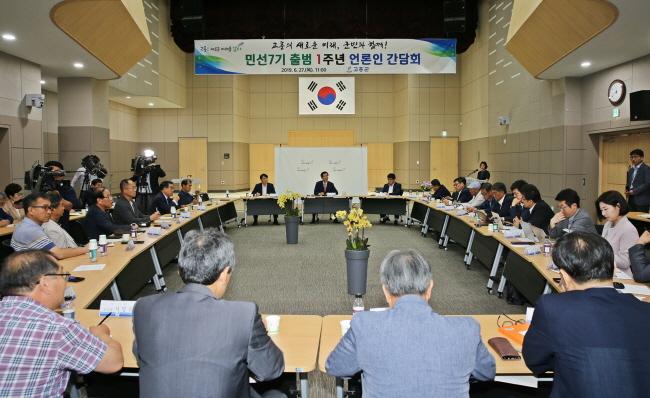¼Û±Í±Ù °íÈﱺ¼ö´Â 27ÀÏ ¿¸° ¹Î¼±7±â Ãâ¹ü 1Áֳ⠾ð·ÐÀÎ °£´ãȸ¿¡¼ 1³â Áֿ伺°ú¿Í ÇâÈÄ ¹ßÀü¹æÇâÀ» ¹àÇû´Ù. ¼Û ±º¼ö´Â º¯È¿Í °³ÇõÀ» ÁÖâÇÏ¸ç ¹Î¼± 7±â¸¦ Ãâ¹üÇß´ø ´ç½Ã¸¦ ȸ°íÇÏ¸ç ¹Î¼±7±â 1³âÀÇ Àϰö °¡Áö ¼º°ú¸¦ Á¦½ÃÇß´Ù.