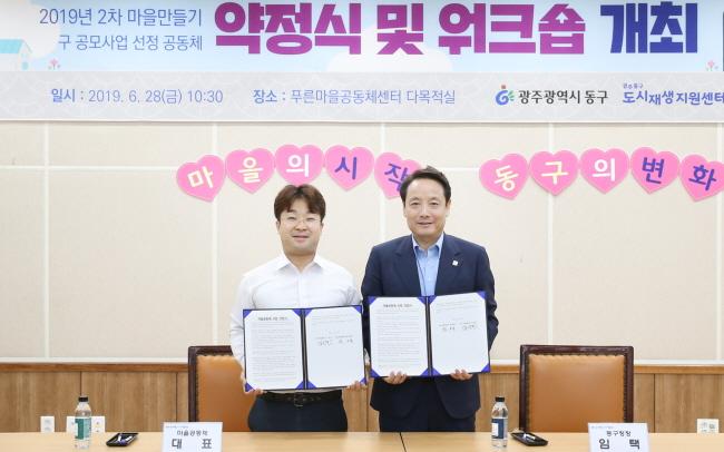 ±¤ÁÖ±¤¿ª µ¿±¸(ûÀå ÀÓÅÃ)°¡ 28ÀÏ Çª¸¥¸¶À»°øµ¿Ã¼¼¾ÅÍ¿¡¼ ¡®2019³â 2Â÷ ¸¶À»¸¸µé±â Áö¿ø °ø¸ð»ç¾÷¡¯¿¡ ¼±Á¤µÈ 16°³ °øµ¿Ã¼ 50¿© ¸í°ú ÇÔ²² ¾àÁ¤½ÄÀ» ü°áÇÏ°í ¿öÅ©¼óÀ» ½Ç½ÃÇß´Ù°í ¹àÇû´Ù.