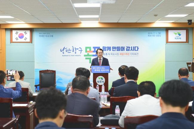 ¼±7±â ÃëÀÓ 1ÁÖ³âÀ» ¸ÂÀº ±èÁ¾½Ä ¸ñÆ÷½ÃÀåÀº 1ÀÏ ¿ÀÀü ½Ãû¿¡¼ ±âÀÚȸ°ßÀ» °®°í, ±×µ¿¾ÈÀÇ Áֿ伺°ú¿Í ÇâÈÄ ½ÃÁ¤¿î¿µ ¹æÇâ µîÀ» ¼³¸íÇß´Ù.