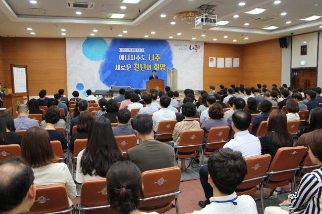 ƯÈ÷, Áö³ ÇØ Àü¶óµµ Á¤¸í õ ³âÀ» ¸Â¾Æ ÃßÁøÇÑ 24°³ ±â³ä»ç¾÷Àº ³ªÁÖÀÎÀÇ Á¤Ã¼¼º°ú ÀÚ±à½ÉÀ» µå³ô¿´À¸¸ç, ¿ÃÇØ ¿¡³ÊÁö¼öµµ ³ªÁÖ ºñÀü ¼±Æ÷¸¦ ÅëÇØ ´ëÇѹα¹ ¿¡³ÊÁö¼öµµ¸¦ ÇâÇÑ ´ã´ëÇÑ °ÉÀ½À» ½ÃÀÛÇß´Ù°í °Á¶Çß´Ù.