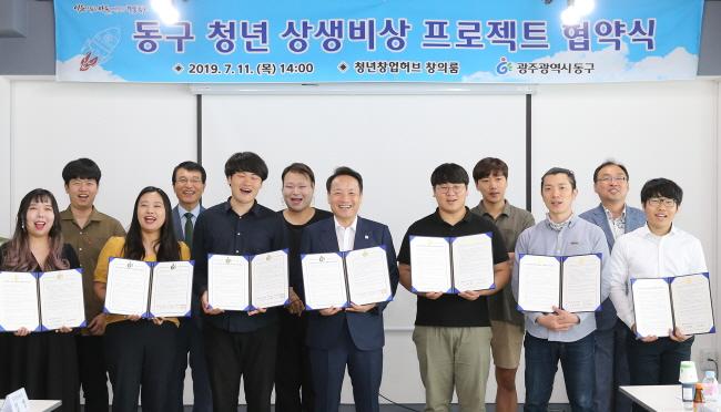 [È£³²´º½º¶óÀÎ = ¼ÀºÈ« ±âÀÚ] ±¤ÁÖ±¤¿ª½Ã µ¿±¸(ûÀå ÀÓÅÃ)°¡ 11ÀÏ Ã»³âÀÌ Á÷Á¢ Á¦¾ÈÇÏ°í ½ÇÇàÇÏ´Â ¡®2019³â µ¿±¸ û³â »ó»ýºñ»ó ÇÁ·ÎÁ§Æ®¡¯¿¡ ¼±Á¤µÈ û³âÂü¿©ÀÚµé°ú Çù¾à½ÄÀ» °³ÃÖÇß´Ù°í ¹àÇû´Ù.