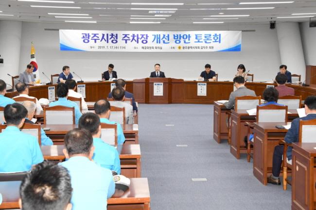 ±¤ÁÖ½ÃÀÇȸ ±èÀÍÁÖ ÀÇ¿ø(±¤»ê1)ÀÌ 17ÀÏ ÁÖÃÖÇÑ ¡®±¤ÁÖ½Ãû ÁÖÂ÷Àå °³¼± Åä·Ðȸ¡¯¿¡¼ Åä·ÐÀÚ¿Í ¹æÃ»¼® Âü¿©ÀÚµéÀº ±¤ÁÖ½Ãû ÁÖÂ÷ÀåÀ» ÀÌ¿ëÇϴµ¥ ³Ê¹« ºÒÆíÇÏ´Ù¸ç, À¯·áÈ·Î ÀüÈ¯ÇØ¼ ½ÃûÀ» ã´Â ¹Î¿øÀεéÀÇ ÆíÀǸ¦ Á¦°øÇØ¾ß ÇÑ´Ù°í ÀÔÀ» ¸ð¾Ò´Ù.