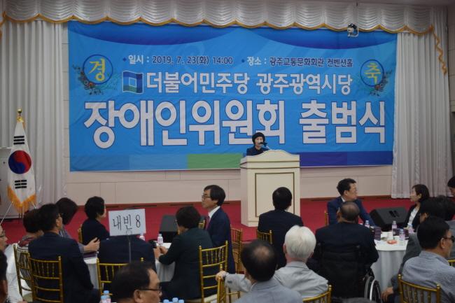 [È£³²´º½º¶óÀÎ = ¼ÀºÈ« ±âÀÚ] ´õºÒ¾î¹ÎÁÖ´ç ±¤ÁÖ±¤¿ª½Ã´ç Àå¾ÖÀÎÀ§¿øÈ¸(À§¿øÀå:³ªÇö)Àº 23ÀÏ 14½Ã¿¡ ±³Å빮ȿ¬¼ö¿ø ÄÁº¥¼ÇȦ¿¡¼ Àå¾ÖÀÎÀ§¿øÈ¸ Ãâ¹ü½ÄÀ» °³ÃÖÇß´Ù°í ¹àÇû´Ù.