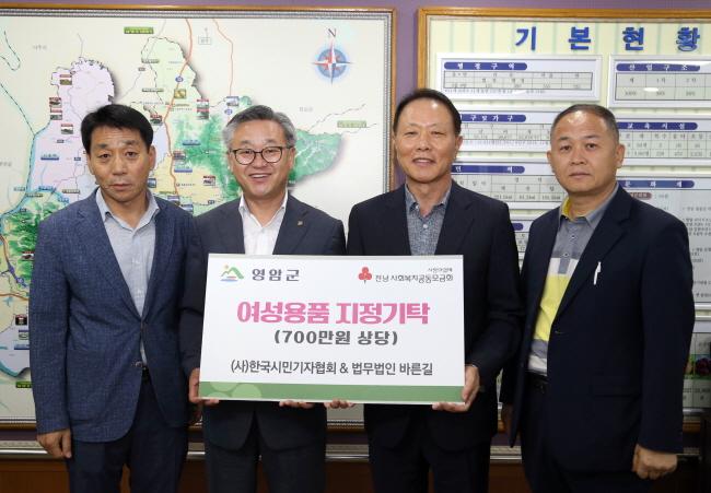 Ưº°È÷ °íÇâ ¿µ¾ÏÀ» »ý°¢ÇÏ¸ç ¿µ¾Ï°ÅÁÖ ¿©¼ºµé°ú û¼Ò³âµé¿¡°Ô Àü´ÞÇØ ´Þ¶ó´Â ¶æ°ú ÇÔ²² ¿©¼º¿ëǰ 100¹Ú½º(7¹é¸¸¿ø »ó´ç)¸¦ °øµ¿À¸·Î ±âÅ¹ÇØ ÁØ (»ç)Çѱ¹½Ã¹Î±âÀÚÇùȸ(ÀÌ»çÀå ·ùÀç¹Î)¿Í ¹ý¹«¹ýÀÎ ¹Ù¸¥±æ ¹®Á¤Çö ´ëÇ¥º¯È£»ç´Â °íÇâ»ç¶ûÀ» ½ÇõÇÔÀ¸·Î½á ¿µ¾Ï»çȸ°¡ ¾î·Á¿î ÀÌ¿ô°ú ÇÔ²²ÇÏ´Â ÀÎÁ¤ ³ÑÄ¡´Â ºÐÀ§±â·Î ÇÑÃþ °íÁ¶µÇ°í ÀÖ´Ù.
