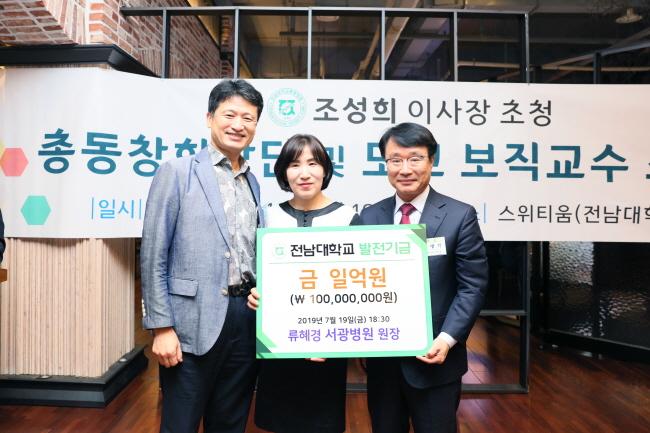 [È£³²´º½º¶óÀÎ = ¼ÀºÈ« ±âÀÚ] ·ùÇý°æ ¼±¤º´¿øÀåÀÌ 7¿ù 19ÀÏ Àü³²´ëÇб³¿¡ ¹ßÀü±â±Ý 1¾ï¿øÀ» ±âŹÇϰí Á¤º´¼® ÃÑÀå°ú ȯ´ãÇß´Ù.