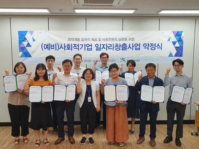 À̹ø ¾àÁ¤Ã¼°áÀº »çȸÀû±â¾÷ ¹ß±¼・À°¼ºÀ» ÅëÇØ Ãë¾à°èÃþ¿¡°Ô ¾ÈÁ¤ÀûÀÎ ÀÏÀÚ¸®¸¦ Á¦°øÇÏ°í ±â¾÷ ÀÚ»ý·ÂÀ» È®º¸Çϱâ À§ÇØ ¸¶·ÃµÆ´Ù. ºÏ±¸´Â (¿¹ºñ)»çȸÀû±â¾÷ ÀÏÀÚ¸®Ã¢Ãâ »ç¾÷¿¡ ¼±Á¤µÈ 10°³ ±â¾÷(½Å±Ô 2°³, Àç½É»ç 8°³)¿¡ 8¿ùºÎÅÍ 1³â µ¿¾È »ç¾÷ºñ ÃÖ´ë 6¾ï¿© ¿øÀ» ÅõÀÔ, ±Ù·ÎÀÚ 78¸í¿¡ ´ëÇÑ ÀΰǺñ¿Í »çȸº¸Çè·á ÀϺθ¦ ±â¾÷¿î¿µ ¿¬Â÷ ºñÀ²*¿¡ µû¶ó Áö¿øÇÑ´Ù.